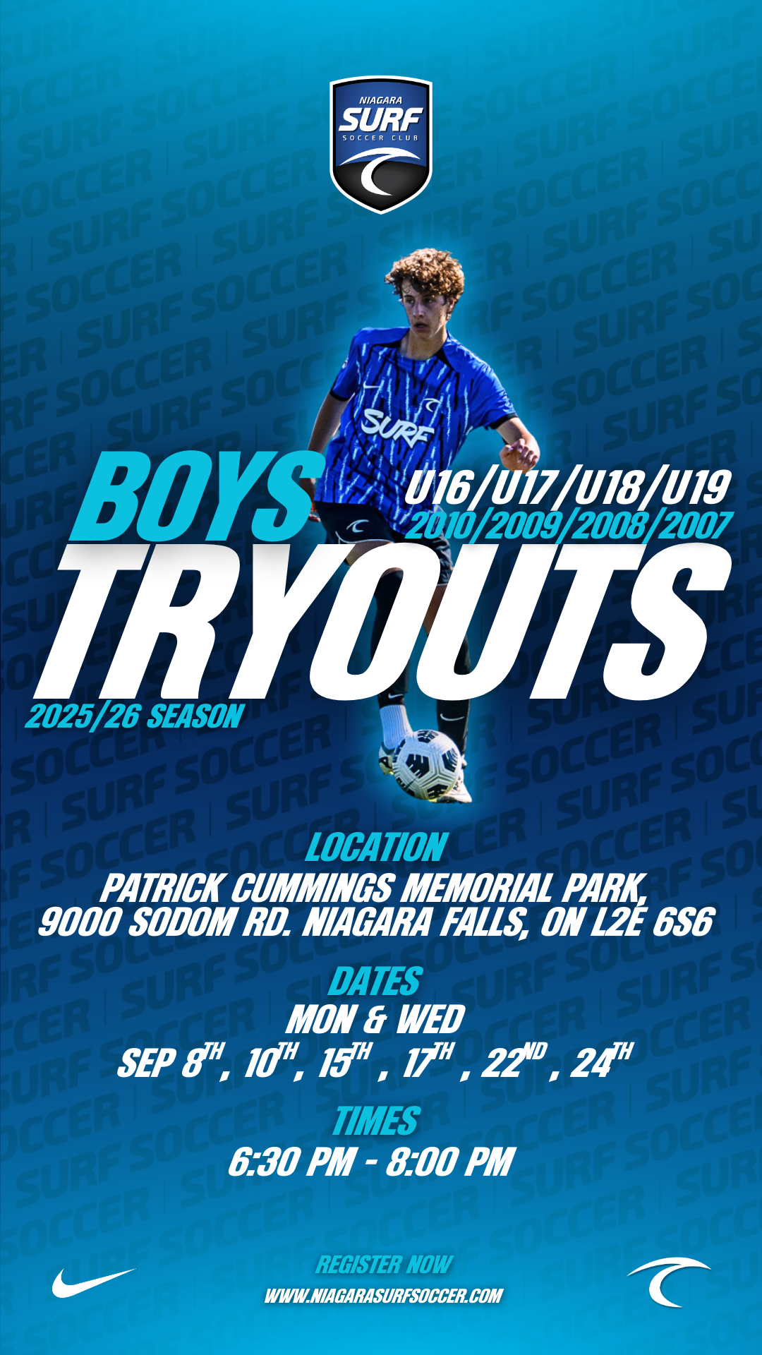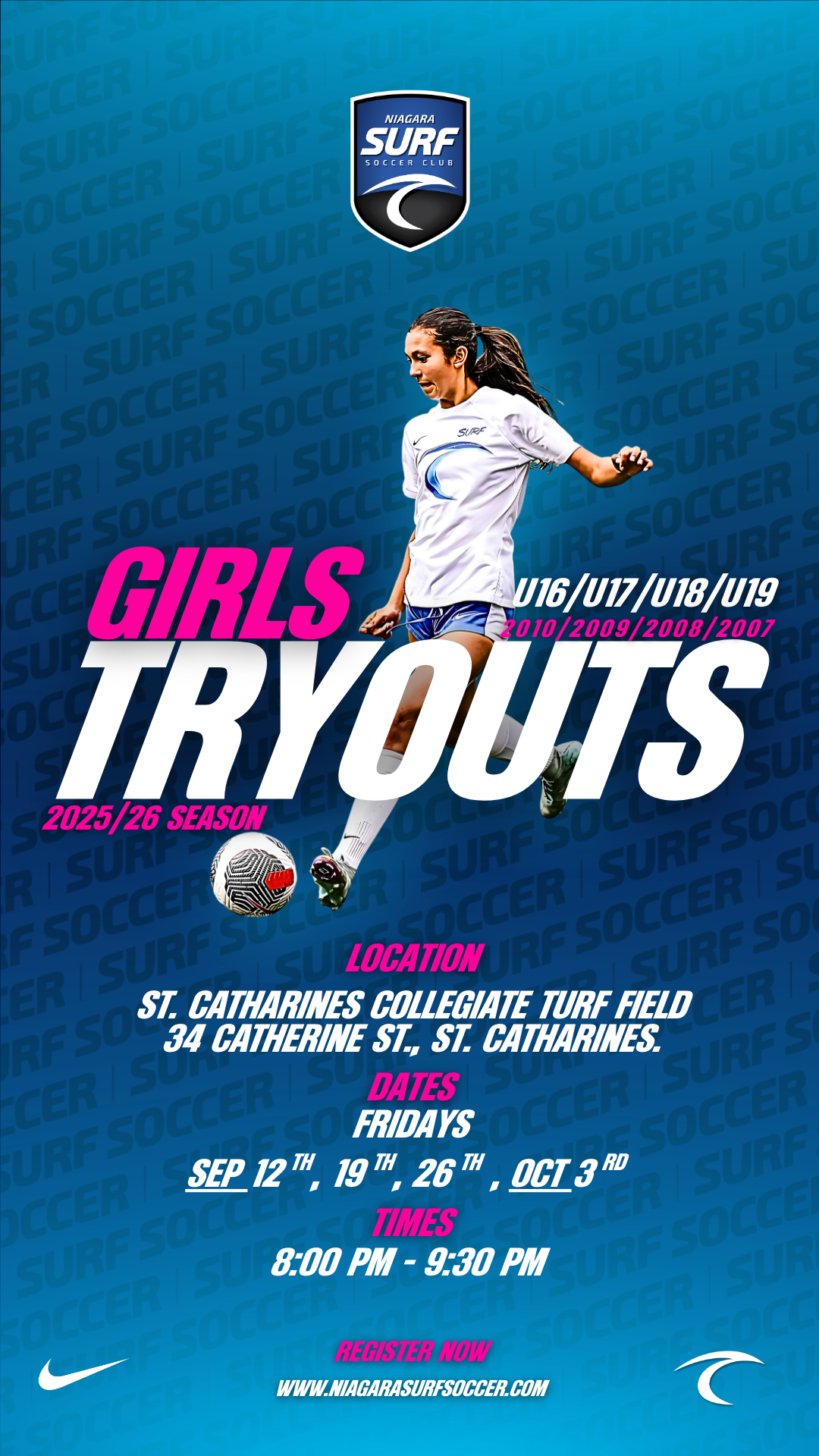 Surf Soccer tryouts for boys and girls are held in September and are always FREE. We believe everyone deserves the same opportunity. Invitational tryouts remain open throughout the season, and interested players or parents can contact the club or complete the registration for more information.